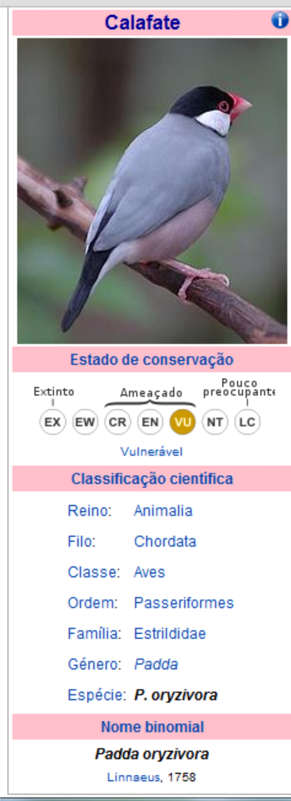 Pardal de java (Padda oryzivora)